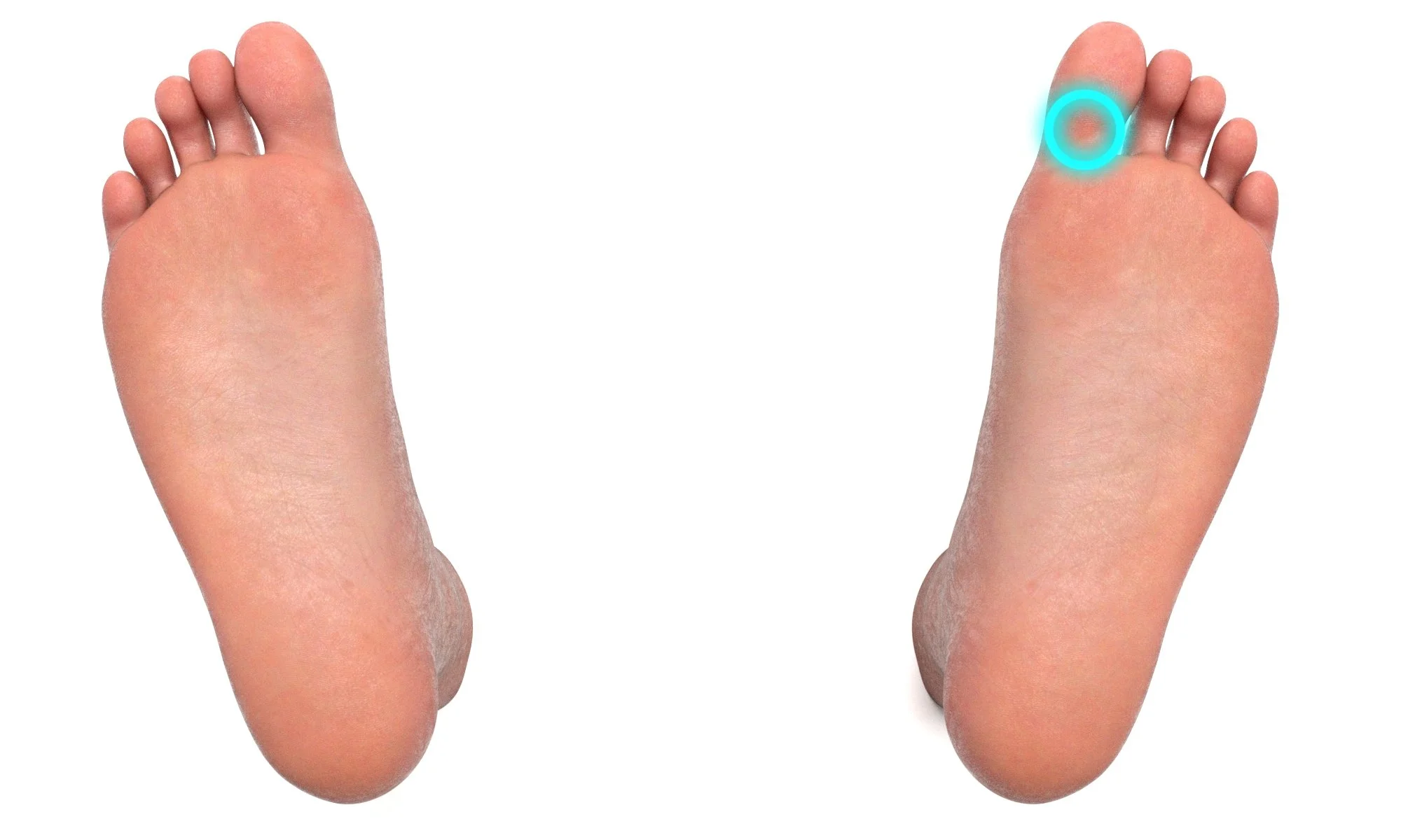Location: Left Big Toe BasePurpose: Supports local left big toe base comfort through direct hallux nerve and first metatarsal joint pathway wellness approaches.