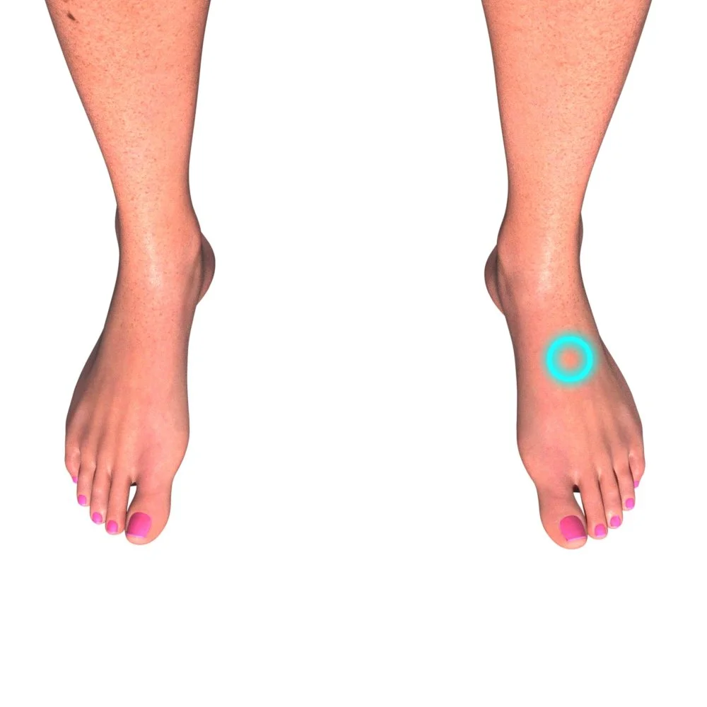 Location: Left L4 (Lower Back)Purpose: Engages nerve pathway support between the lumbar spine and dorsal foot muscles for comprehensive foot and toe wellness.
