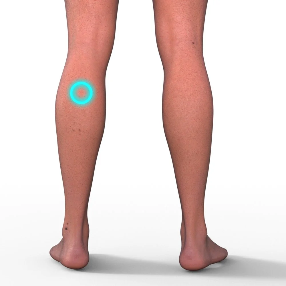 Location: Left Upper Calf (Gastrocnemius Region)Purpose: Supports local gastrocnemius muscle comfort and circulation through direct upper calf pathway wellness.